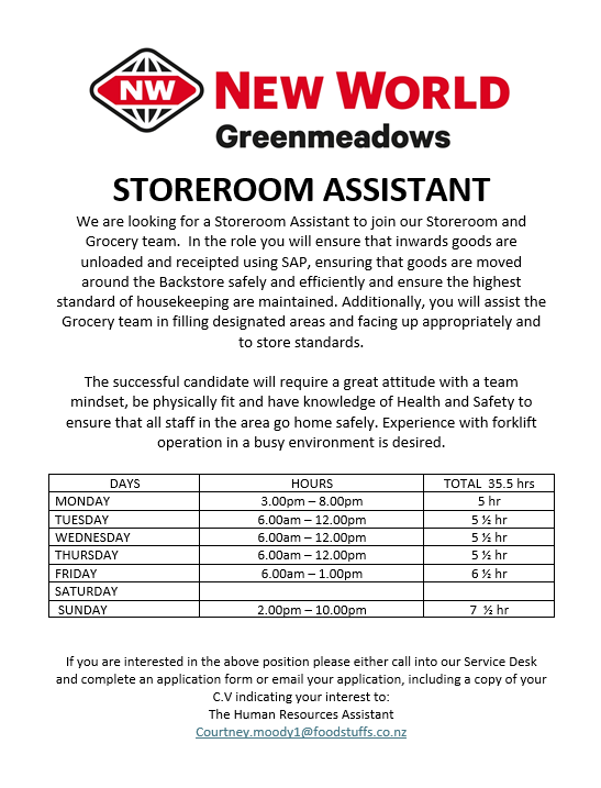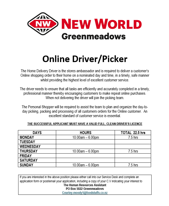 1. Post: The Human Resources Manager, PO Box 5022, Greenmeadows, Napier.